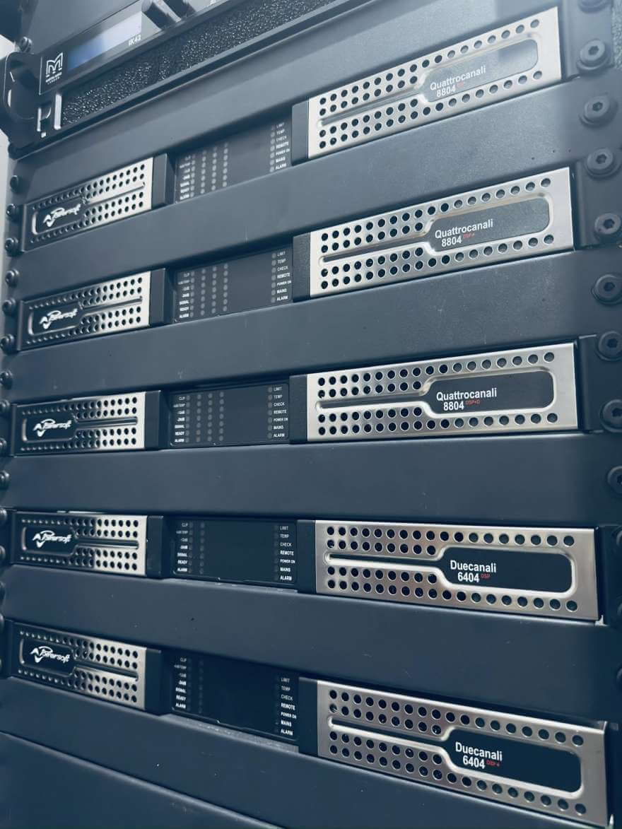 At the heart of the system are Powersoft Quattrocanali 8804 and Duecanali 6404 amplifiers, chosen for their high-power density, efficiency and reliability.
