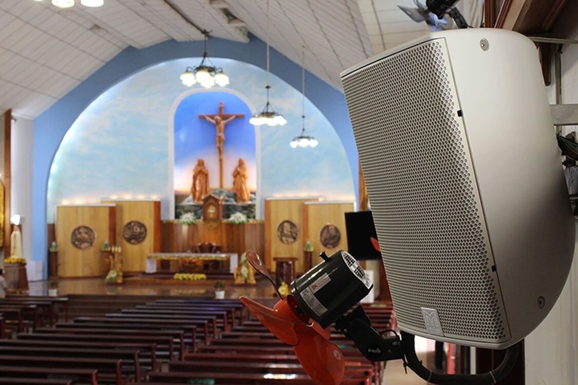 This structure of the building is wide and long, with a vaulted ceiling. Therefore, it was decided to space 12 CDD10W loudspeakers evenly along the wall, with a further pair acting as monitors on the altar area. All loudspeakers are packaged with two Martin Audio MA5.0Q amplifiers and two DX0.5dedicated signal processors.
