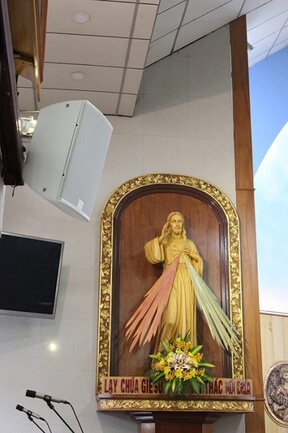 With upwards of 1,000 people typically attending each of the Masses, the requirement for higher performance sound is essential. After receiving the go-ahead from the Bishop and parish pastoral council, Mr.Duc Dinh, a technician from Duc ProAudio specified a Martin Audio CDD10Wloudspeakers system – the first time Martin Audio loudspeakers have been installed in a Vietnamese parish church.