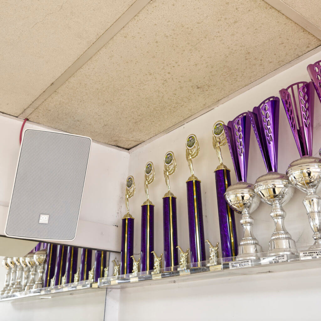 Optimal Audio’s Up 6 ceiling speakers with back cans were positioned wherever suspended ceilings allowed. When ceiling mounts weren’t possible, Optimal Audio Cuboid 6 were placed to take full advantage of the 130° x 120° dispersion, ideal for coverage without audio spill.