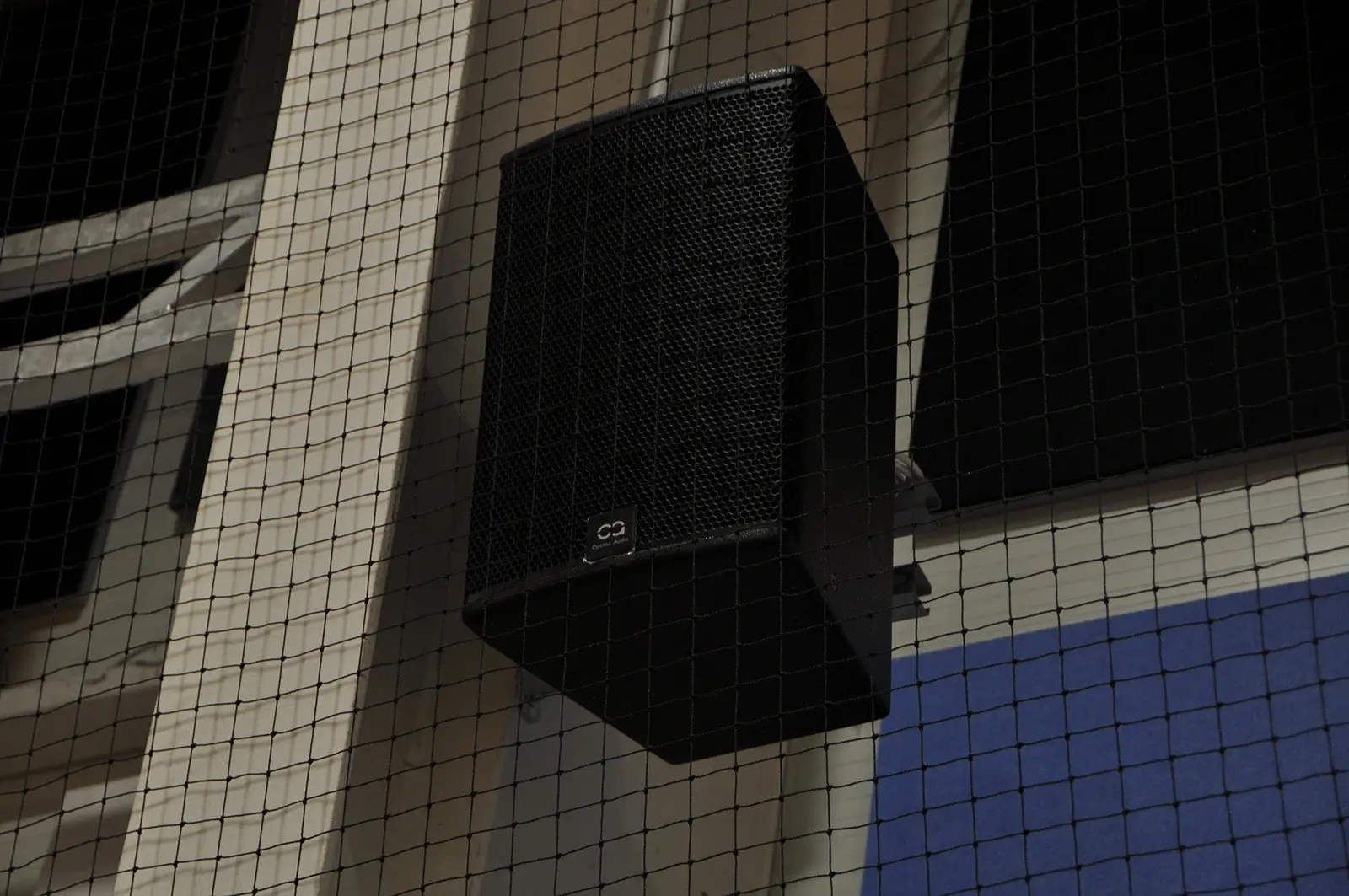 Around the playfield, a total of four Optimal Audio Cuboid 10 full-range loudspeakers were mounted in portrait mode to ensure clear announcements and even coverage across the court.