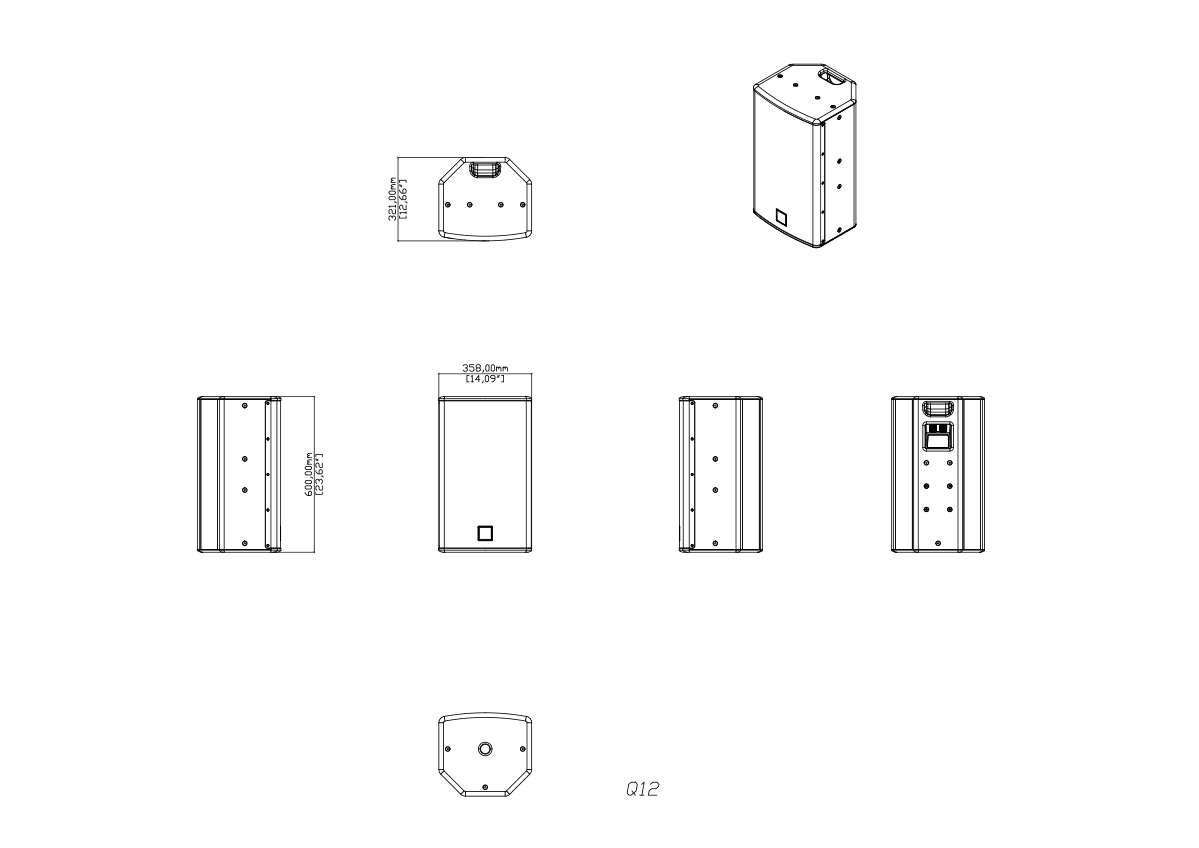 Constructed from durable plywood, Q12 is finished in a tough black paint and protected by a screw-tight steel grille. It includes M8 inserts for wall brackets, yoke or eyebolt suspension, and the pole-mount socket has a removable cover to maintain clean aesthetics in installed applications.