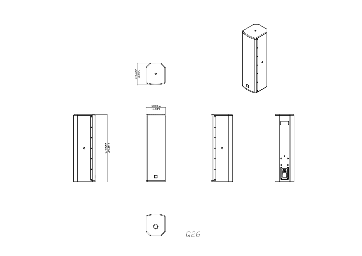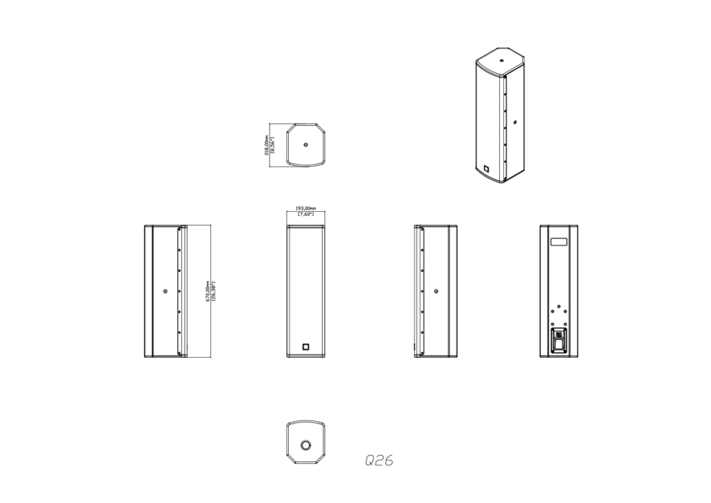 Q26 features a dual 6” (150mm) LF driver with a 1.5” (38mm) voice coil and a 1” (25mm) exit HF compression driver with a 1” (25mm) dome. A Differential Dispersion horn ensures wide, consistent coverage.