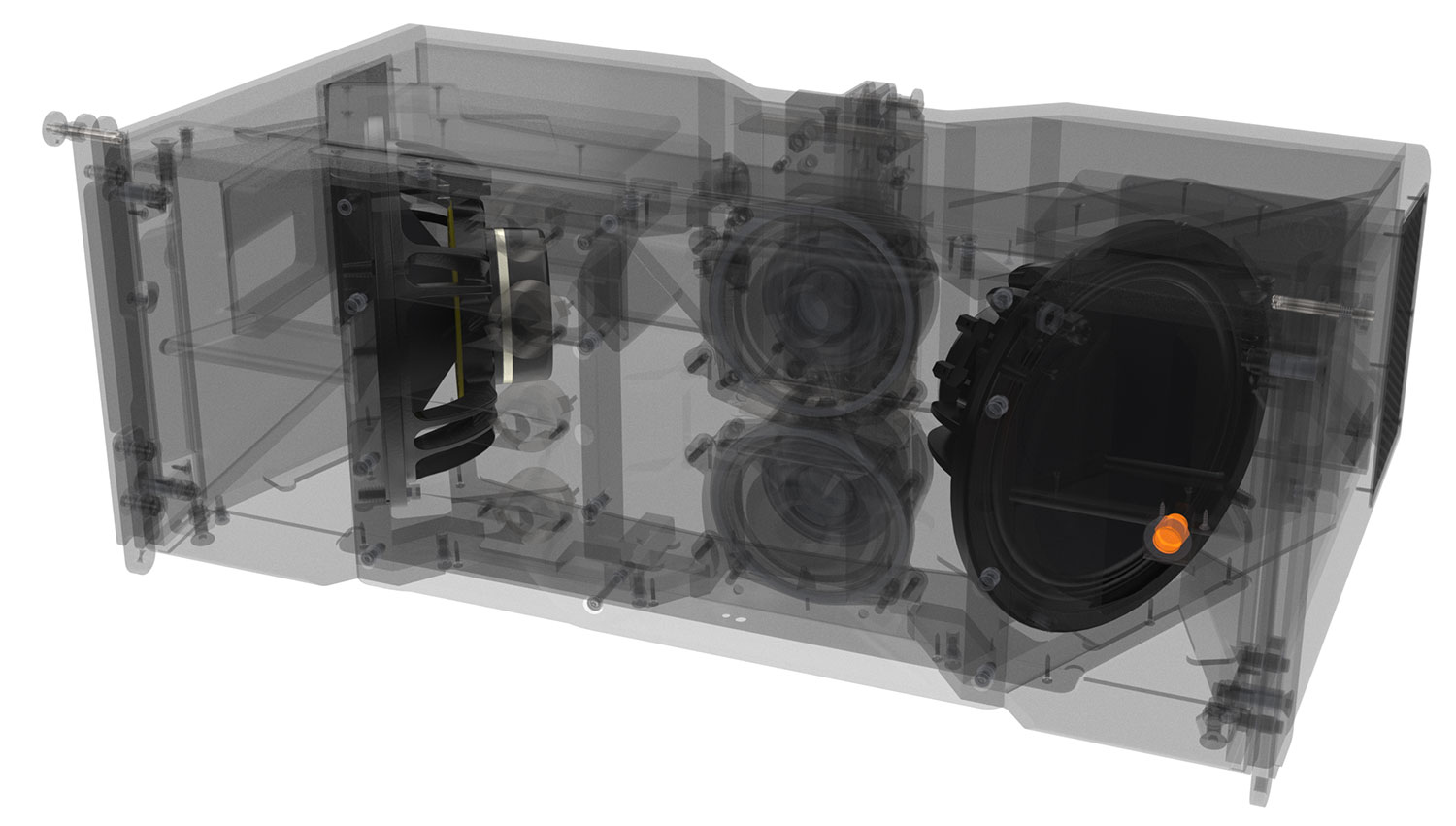 Mid and HF horns are physically separate — a key factor in the WPC’s exemplary 100° horizontal constant directivity dispersion pattern. The midrange horn design utilises 2 x 5” (125mm) neodymium drivers to produce a high output while the HF section employs 4 x 0.7” (19mm) exit neodymium compression drivers which feed 4 individual horns. Use of multiple small HF drivers instead of a more traditionally-used large format compression driver results in less distortion and a more extended HF response.