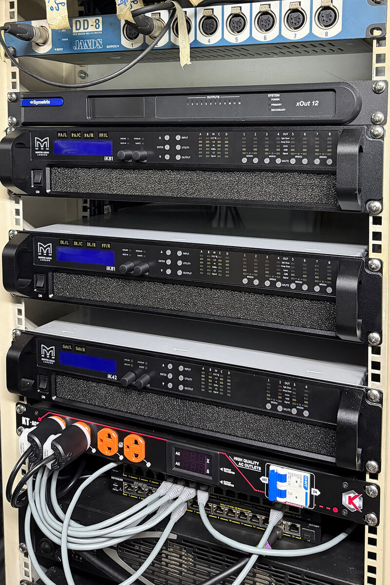 “We had nearly two weeks to run entirely new cabling and put loudspeakers in place, but the old system had to stay live during that period,” Pok explains. “We only had one night to do the final switchover from the old system to the new LCR and TiMax infrastructure. That meant removing and repositioning loudspeakers, re-patching amplifiers, and matching all the original routing and presets, as well as introducing the new immersive paths. For a production company, we’re used to that kind of intense overnight changeover, but it was still a big challenge.”