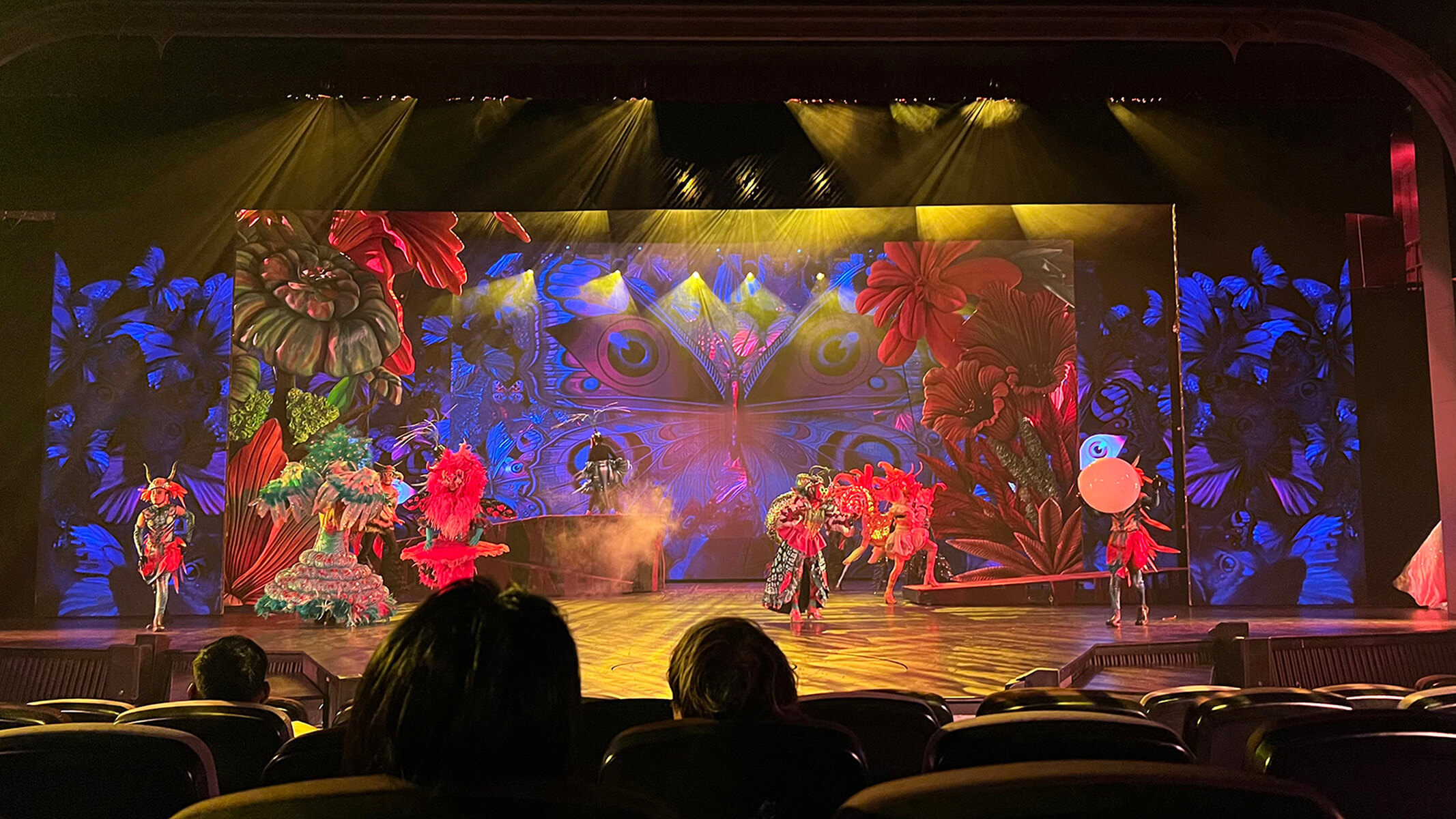 The LCR system is supported by flown Martin Audio SX218 subwoofers in the centre behind the main cluster – a necessity in a theatre where floor space is dedicated entirely to choreography and scenic movement. Immersive coverage is delivered by Martin Audio ADORN A80 loudspeakers deployed as surrounds and delays, including coverage for the balcony and two VIP rooms, where ADORN A55 loudspeakers are used.